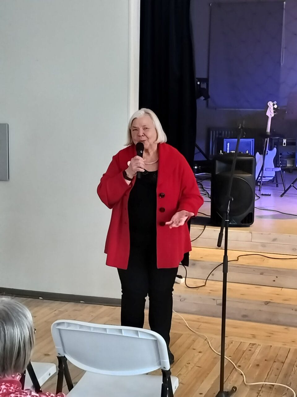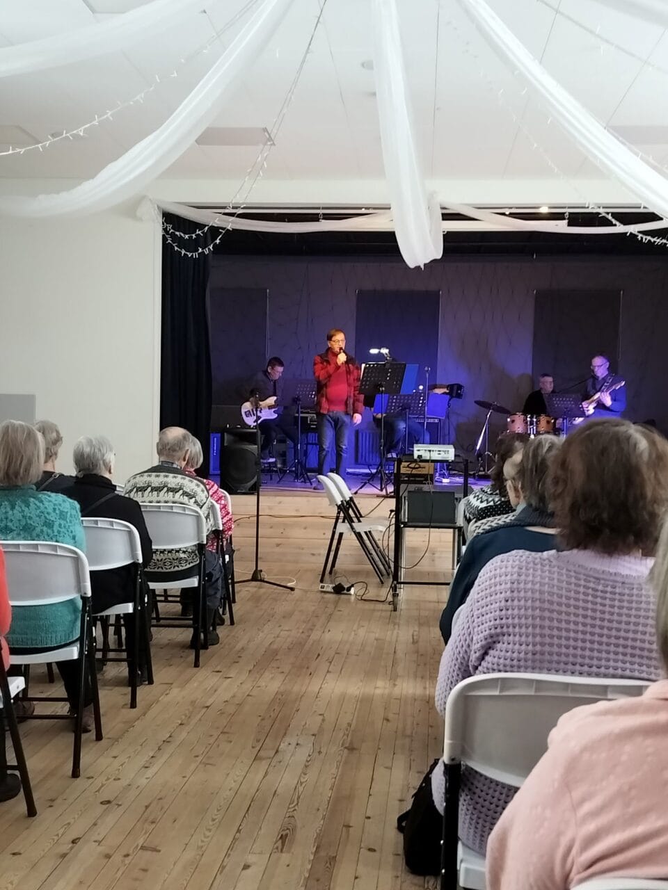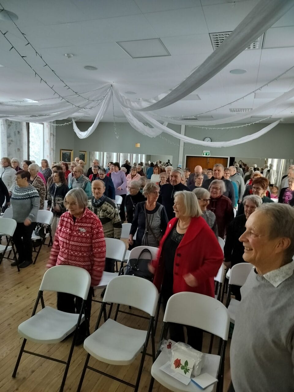 Aluksi kahvittelimme. Yhdistyksemme bändi EVP esitti tilaisuuden henkeen sopivia kappaleita, jumpattiin ja laulettiin Matti Laukan johdolla. Lopuksi oli arvontaa.
